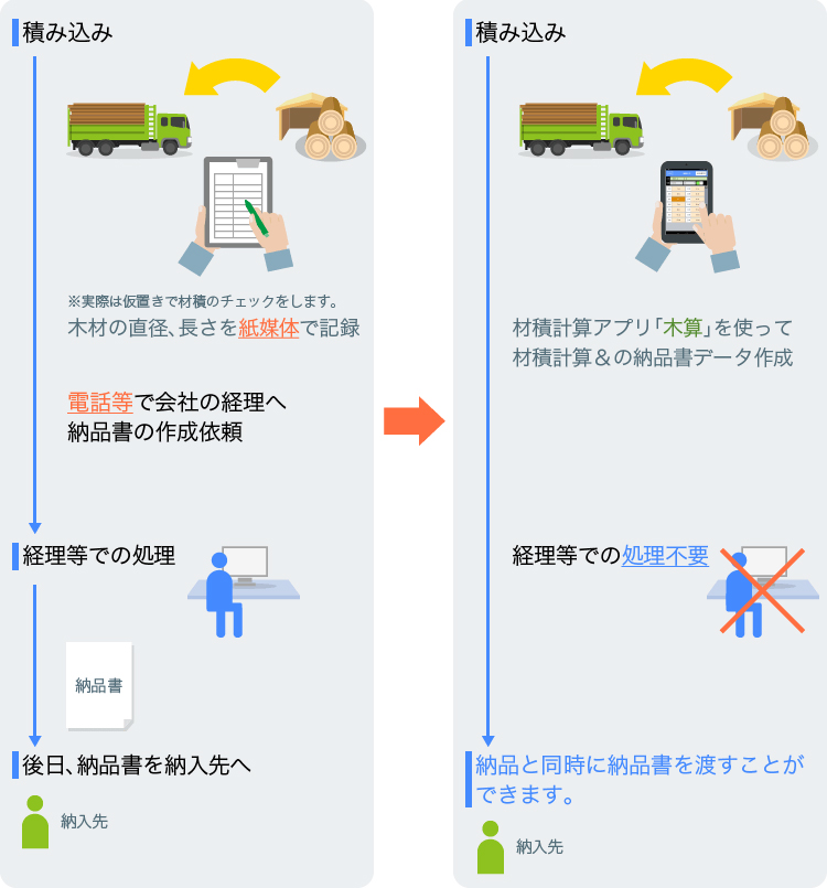 材種、長さを指定し、経サイズボタンで本数を入力することで材積が計算できます。