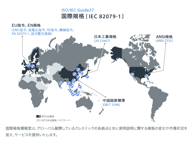 製品に規格があるように、使用説明にも国際的なルールがあり国際規格IEC 82079-1(Preparation of instructions for use)にて定められています。各国は消費者の知識レベルや社会通念などを考慮してその国特有の国家規格に適応します。さらに、国際規格は見直され変化します。
