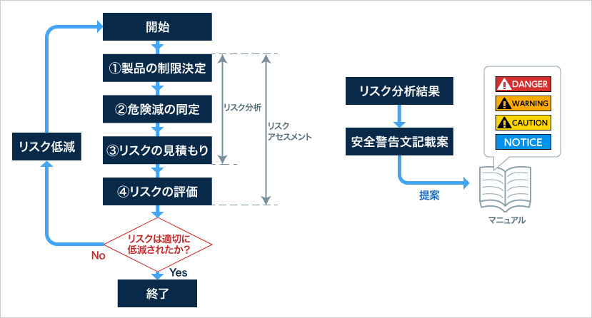 製品のリスク分析結果に基づいたマニュアルへの安全警告文をご提案します。
