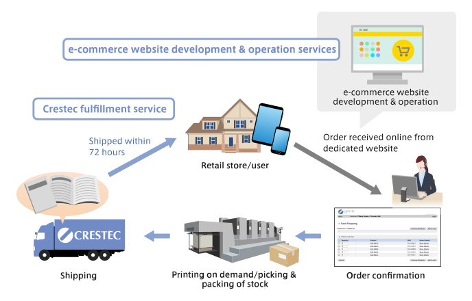 Crestec fulfillment services use printing-on-demand capable of quickly printing and binding only the necessary quantity of documents according to the orders received, allowing us to print small lots of many items. This eliminates the need for inventory management, freeing you from the problems associated with securing sufficient storage space and management resources.