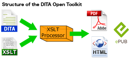 The DITA Open Toolkit, which makes it possible to convert DITA to various data formats, has been developed as a sourceforge open project which is available for free. However, in order to meet the design levels required for products, plugins for creating data with independent specifications must be developed.