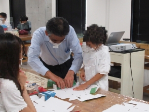 In August, 2021, our packaging and design room (Development and Design Department for product packaging materials) collaborated on the “Let’s Make a Storage Box with Cardboard!” children’s science class held at “Knowledge Hub Aichi” Aichi Center for Industry and Science Technology (Toyota City, Aichi Prefecture), providing the class and guidance.