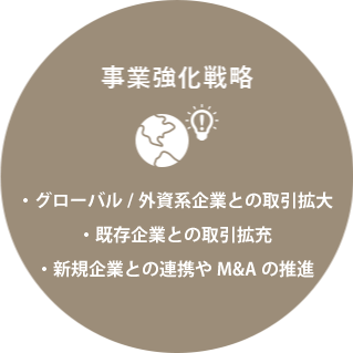 グローバル/外資系企業との取引拡大、既存企業との取引拡充を図りながら、