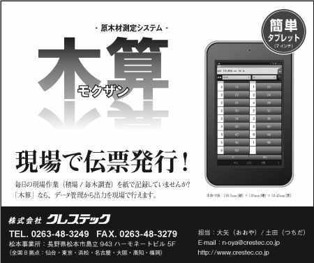 「木算」は長野県納材協会(木材流通業者団体)と協力して開発を進めてきた、Androidタブレット型端末に実装されたアプリケーションです。