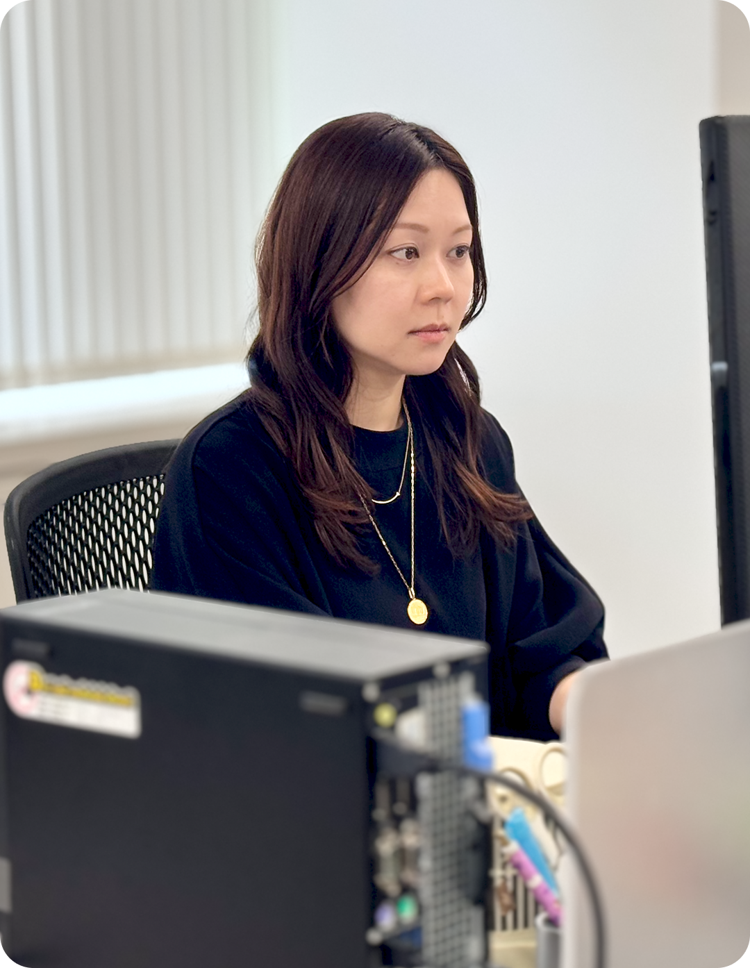 東京と福岡にあるプロダクションセンターの管理・運営を担当しています。マネジメントが主な業務ですが、繁忙期などは販促系の翻訳や動画ナレーション用の英語作成、HTMLコーディングなどの制作業務も行っています。チーム責任者と連携しながら、組織運営と現場のバランスを意識して動いています。スタッフとの日々のコミュニケーションも大切にしていて、実務を通じて信頼関係を築いています。